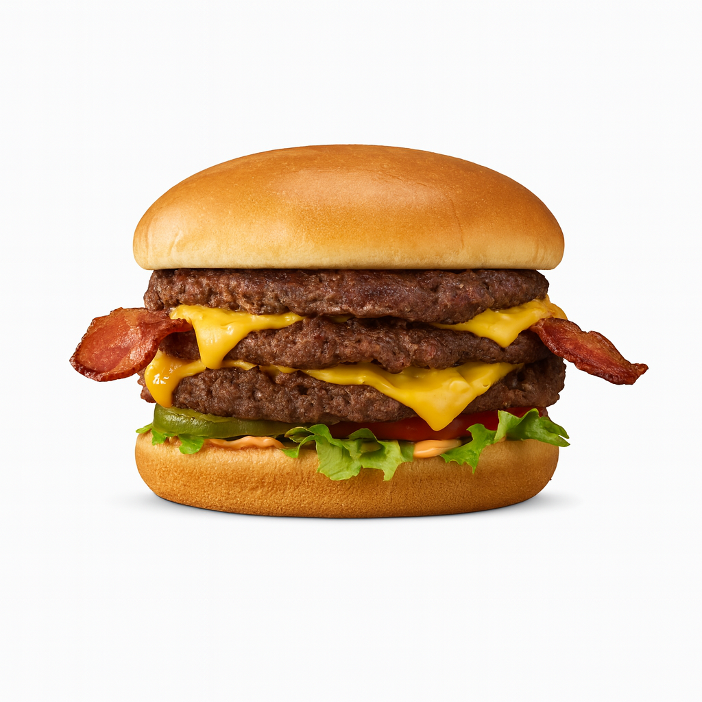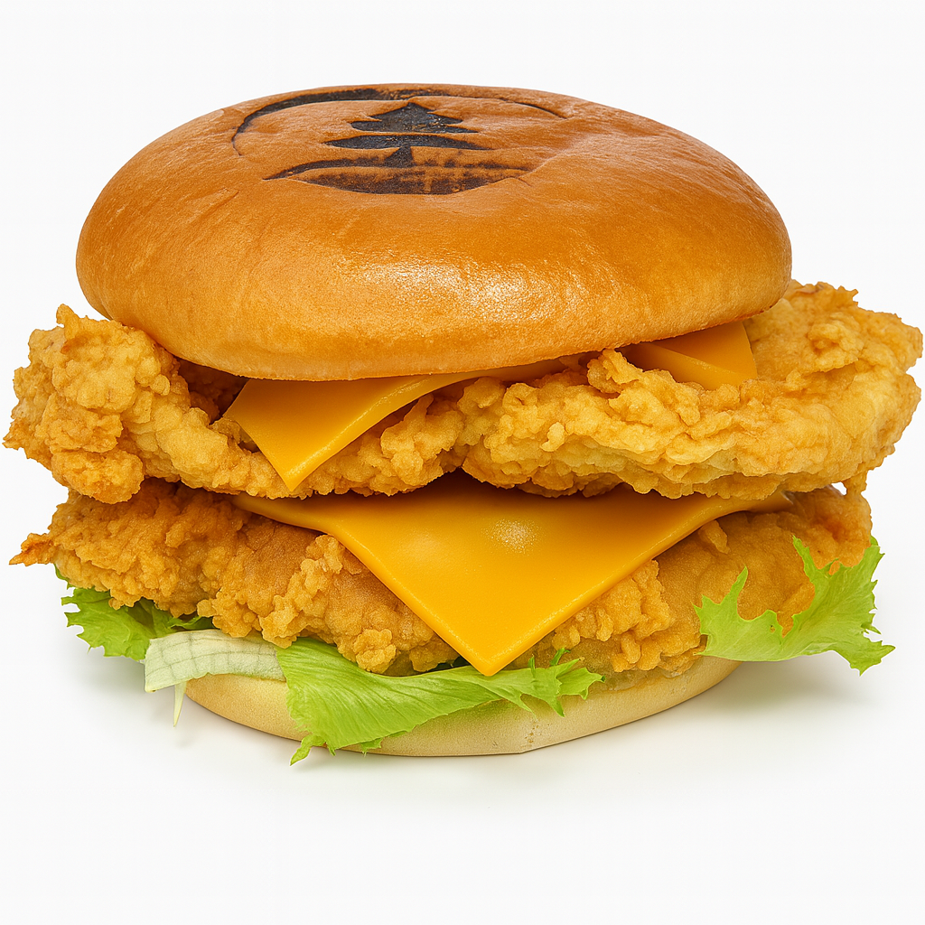 Double the crunch, double the flavour — two crispy chicken fillets stacked high with a melted slice of American cheese and drizzled with our fiery spicy burger sauce, all packed into a soft, toasted bun. Loaded, bold, and built to satisfy.
