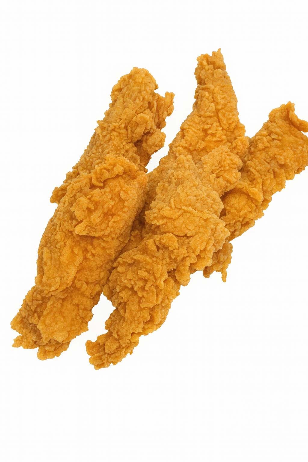 Tender, juicy strips of fried chicken with a crispy golden coating — perfect for dipping, munching, or