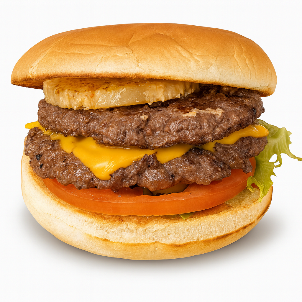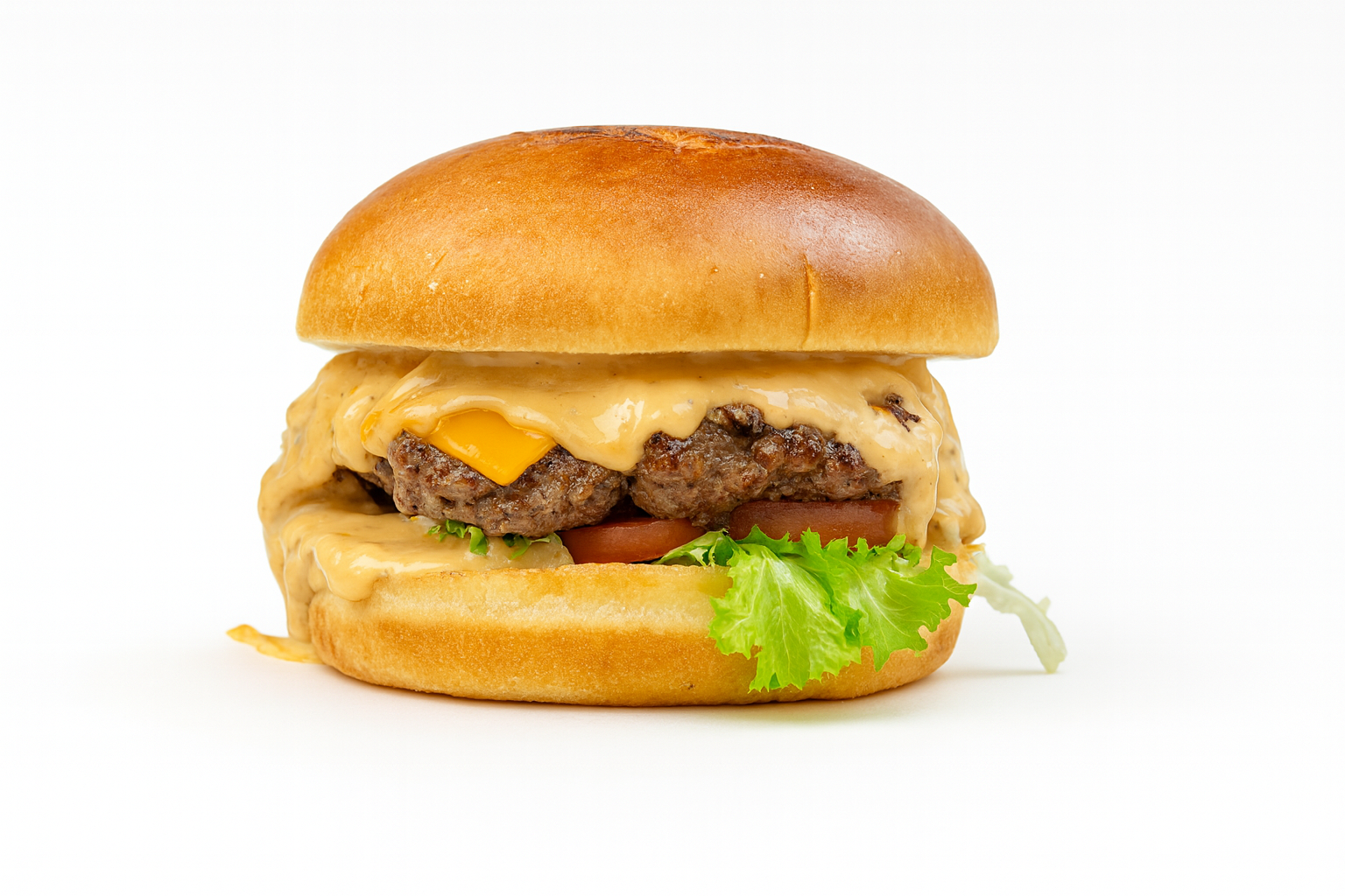 Double juicy, handcrafted smash beef patties cooked to perfection and served on a soft toasted bun. No frills, no fuss just quality beef, lettuce, tomato and our signature burger sauce.