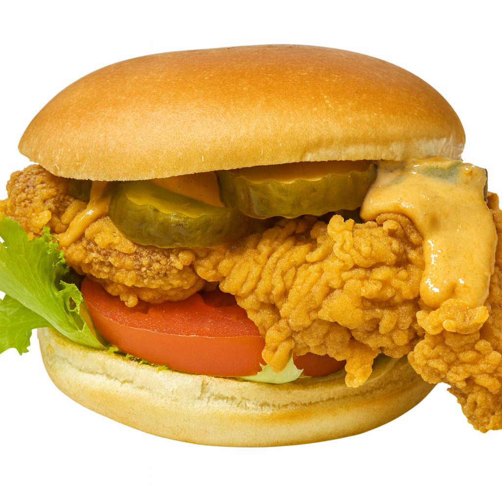 Crispy fried chicken topped with crunchy pickles, creamy mayo, and a touch of tang all served in a toasted bun. A juicy bite with a satisfying pickle punch!