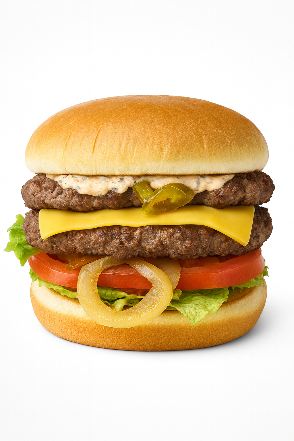 Spicy, crispy, cheesy Double smash beef patties topped with Chilli salsa and melted American cheese, finished with our signature burger sauce for a bold, crave-worthy bite.