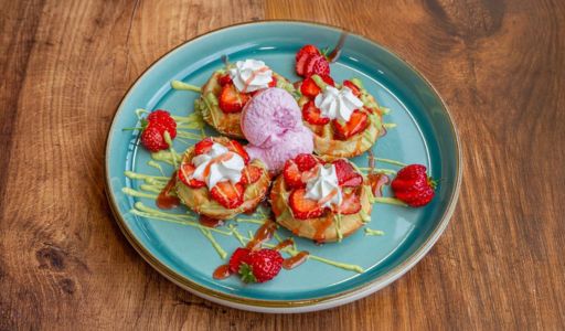 Fresh strawberries, strawberry purée, pistachio sauce, and a scoop of vanilla gelato. Finished with crushed pistachios & extra strawberry drizzle.
